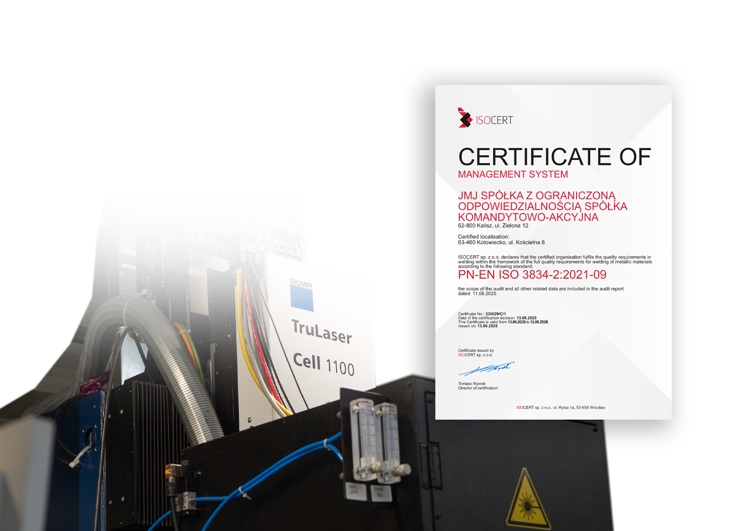 Our tube manufacturing complies with the requirements of PN-EN ISO 3834-2:2021, ensuring the highest standards in welding processes and quality management.